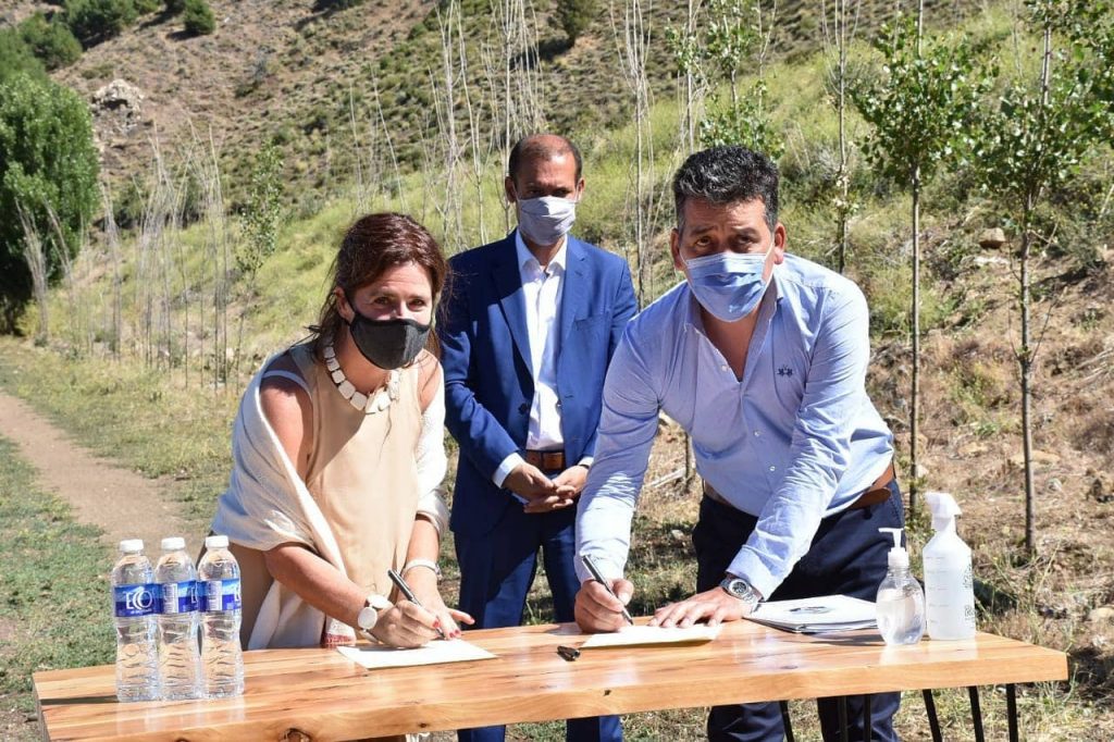 La Presidenta de la CIP, Eugenia Ugartemendia, recibió de parte del Intendente de Aluminé, Gabriel Álamo, y la ratificación del Gobernador, Gutiérrez, la restitución del predio junto al río Ruca Choroy, que fue saneado y restaurado para su devolución.