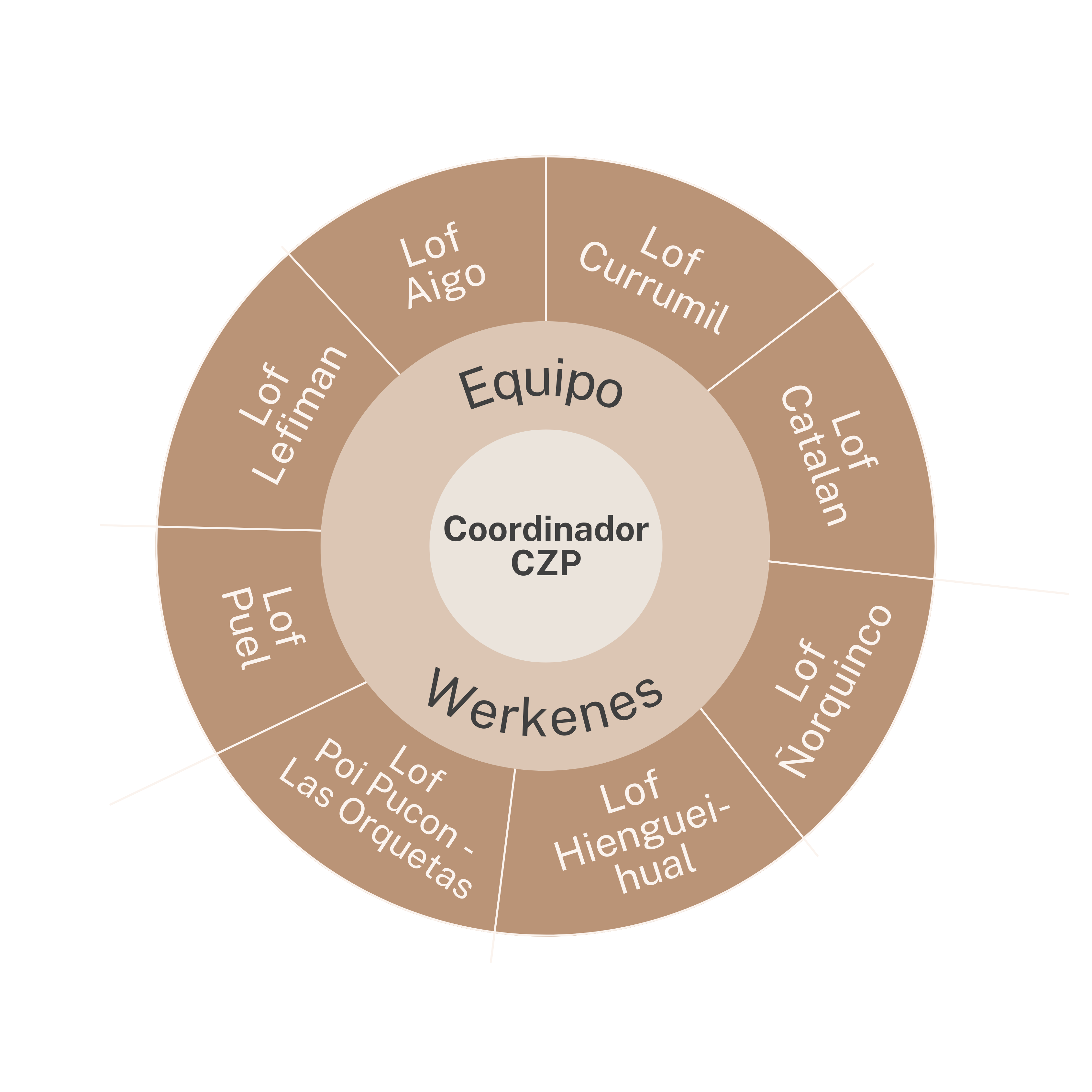“Cada comunidad se encuentra dirigida por un Logko (jefe), cuya función principal es administrar los recursos del Lof, especialmente las tierras y distribuir su uso, además de otras tareas de enlace con el gobierno local y nacional. Si bien anteriormente la jefatura era hereditaria, ahora los Logko son electos por dos (2) años por los miembros de la comunidad, (asamblea), pudiendo ser re-electos en sus funciones. Asimismo, cada comunidad con un Consejo Directivo que cumple funciones de administración del territorio y los recursos y sirve de enlace con las instituciones de gobierno locales. Existen otros cargos tradicionales tales como los Werken que han venido revalorizándose y recuperándose a partir de la labor de las organizaciones Mapuce.”