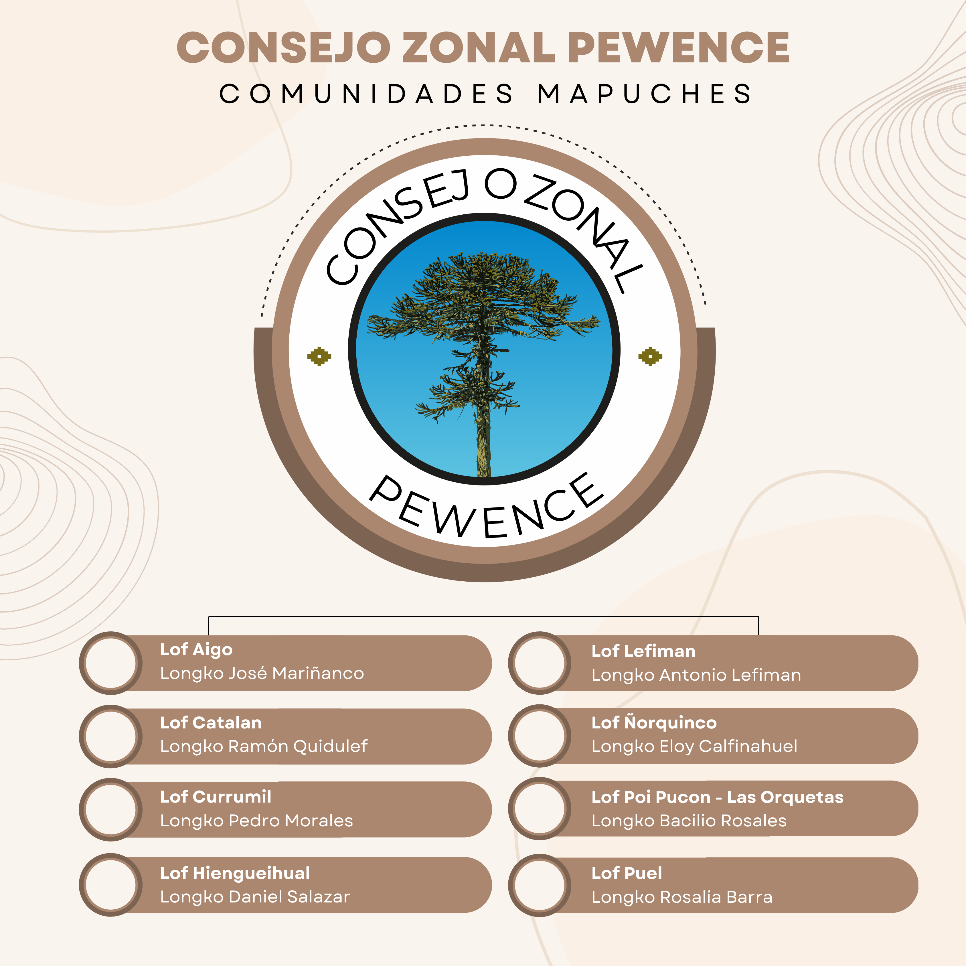 El órgano político que nuclea a todas las Comunidades del Departamento Aluminé se denomina Consejo Zonal Pewence, actualmente a cargo del Longko Daniel Sazalar y está organizado de la siguiente manera: